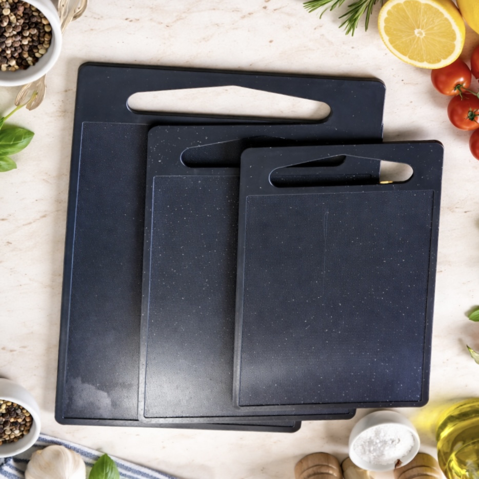 El set de tablas es una opción práctica y funcional para el uso diario en la cocina 🧑🍳. Fabricadas en plástico libre de BPA, brindan seguridad y comodidad al momento de cortar y preparar alimentos.