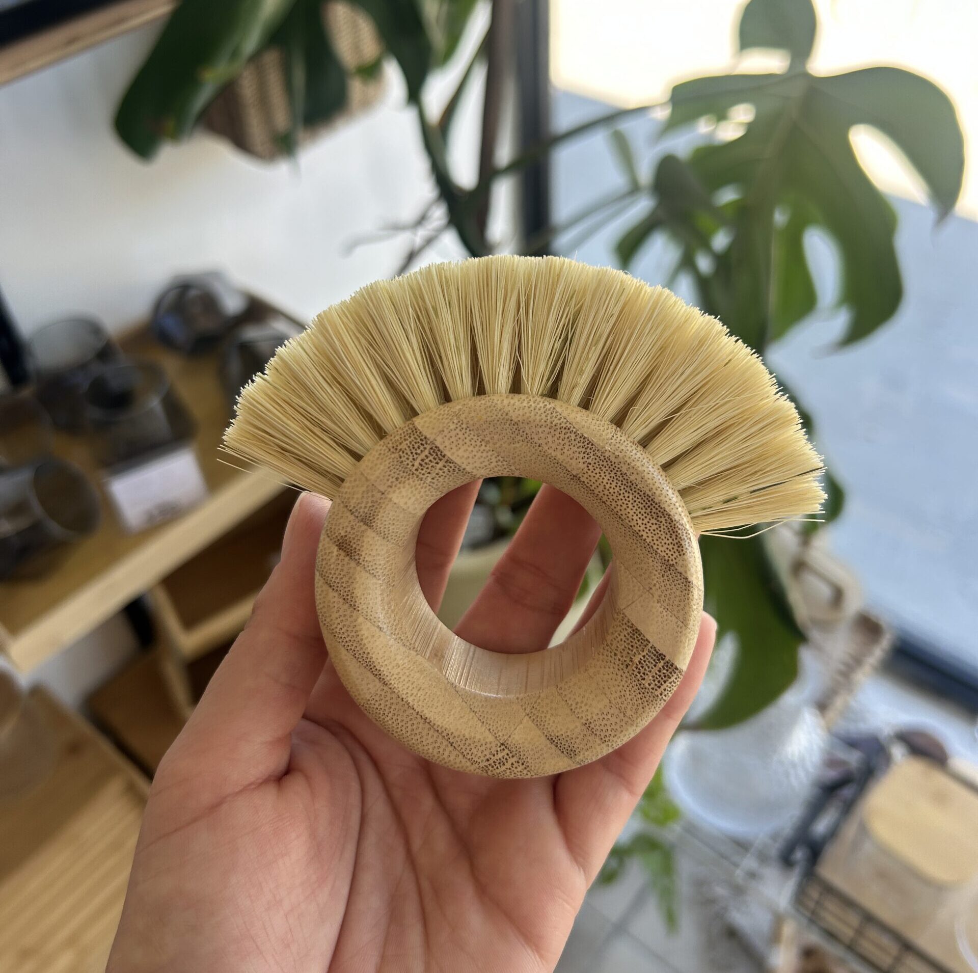 Cepillo curvo de bambú y fibra sintética – Práctico y resistente