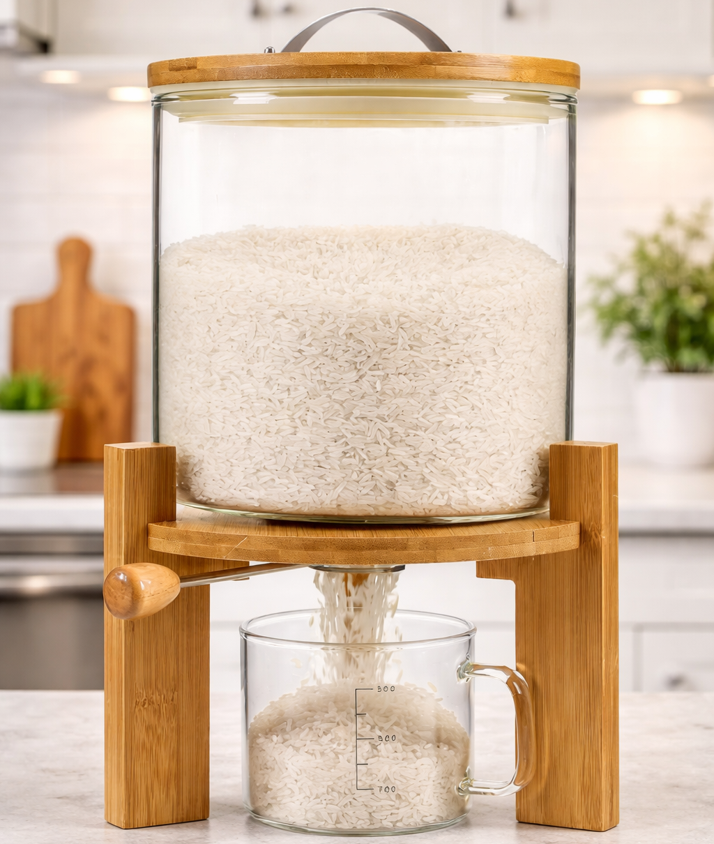 El dispensador de vidrio y bambú es una opción elegante y funcional para organizar y presentar distintos productos en el hogar. Su combinación de materiales aporta un estilo natural y moderno, ideal para complementar cualquier espacio.
