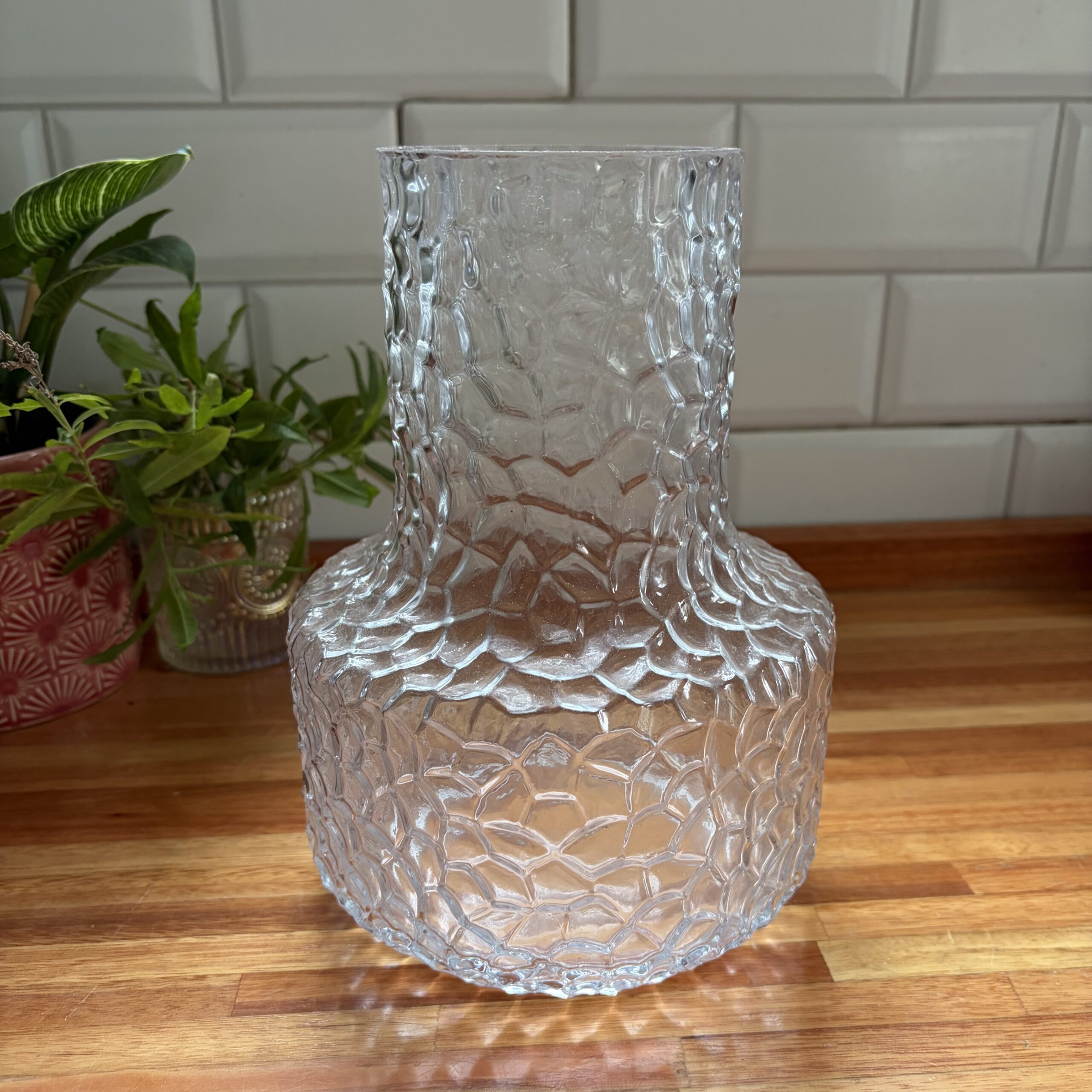 El florero labrado es una pieza decorativa elegante, ideal para realzar flores y sumar estilo a cualquier ambiente 🌸. Su diseño en vidrio con detalles labrados aporta textura y un toque sofisticado, convirtiéndolo en un elemento destacado en la decoración 🏡.