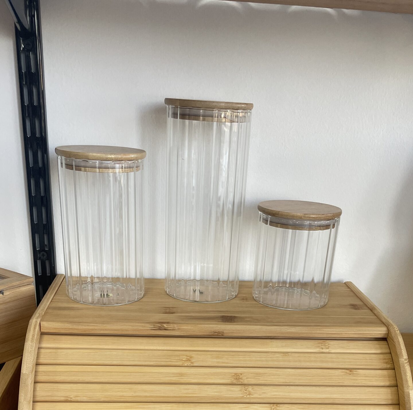 El frasco de vidrio con tapa de bambú hermética y detalle de labrado en rayas es una opción práctica y decorativa para almacenar distintos alimentos. Su diseño transparente permite ver fácilmente el contenido, mientras que el relieve de rayas aporta un estilo elegante y diferente.