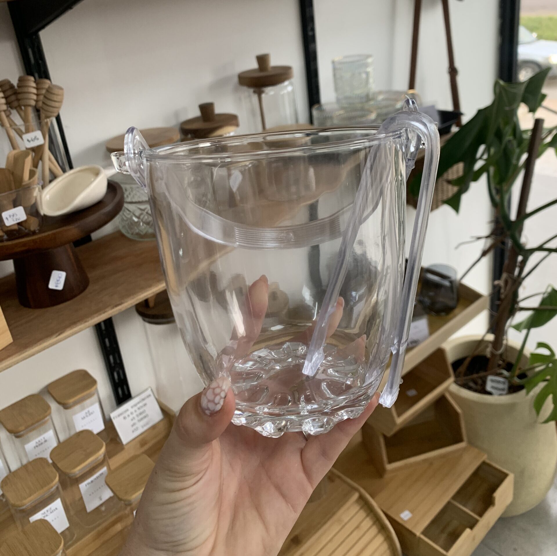 La hielera de vidrio con accesorios en plástico es una opción práctica y elegante para mantener el hielo listo al momento de servir bebidas. Su diseño transparente permite ver fácilmente el contenido, mientras que los accesorios facilitan su uso.