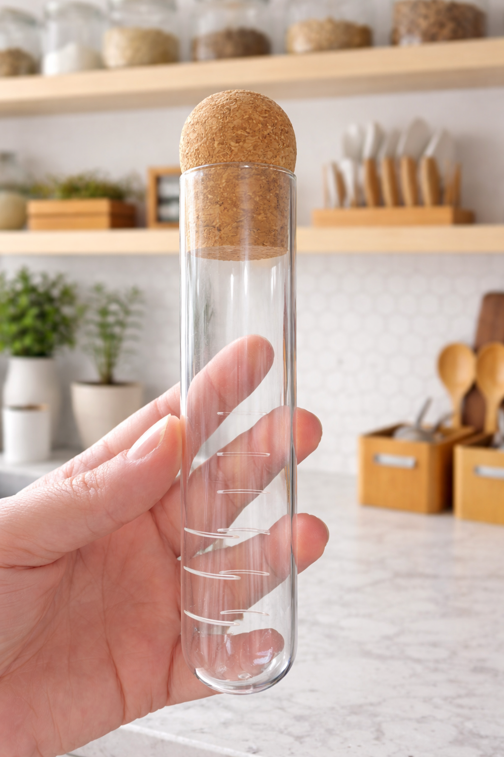 • Diseño en vidrio con tapa de corcho de estilo natural