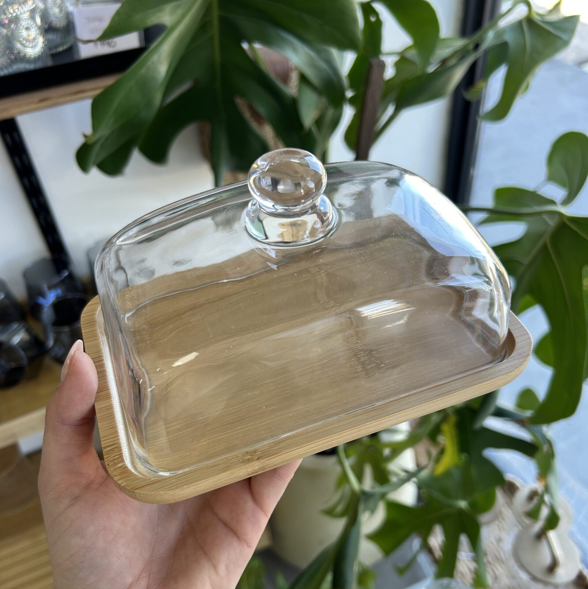 La mantequera Atenas combina vidrio y bambú en un diseño simple y funcional, ideal para conservar y servir manteca de forma práctica. Su base de vidrio permite ver fácilmente el contenido, mientras que la tapa de bambú aporta un toque natural y decorativo.