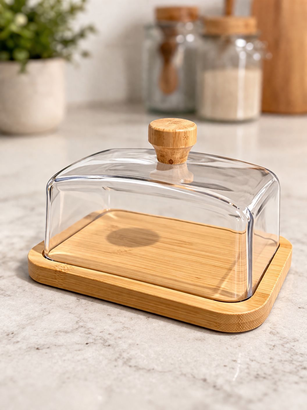 La mantequera Mora es una pieza práctica y decorativa pensada para conservar y servir manteca de forma cómoda 🧈. Su diseño combina bambú y acrílico 🌿, logrando un estilo natural y moderno que se adapta fácilmente a cualquier cocina o mesa 🍽️.