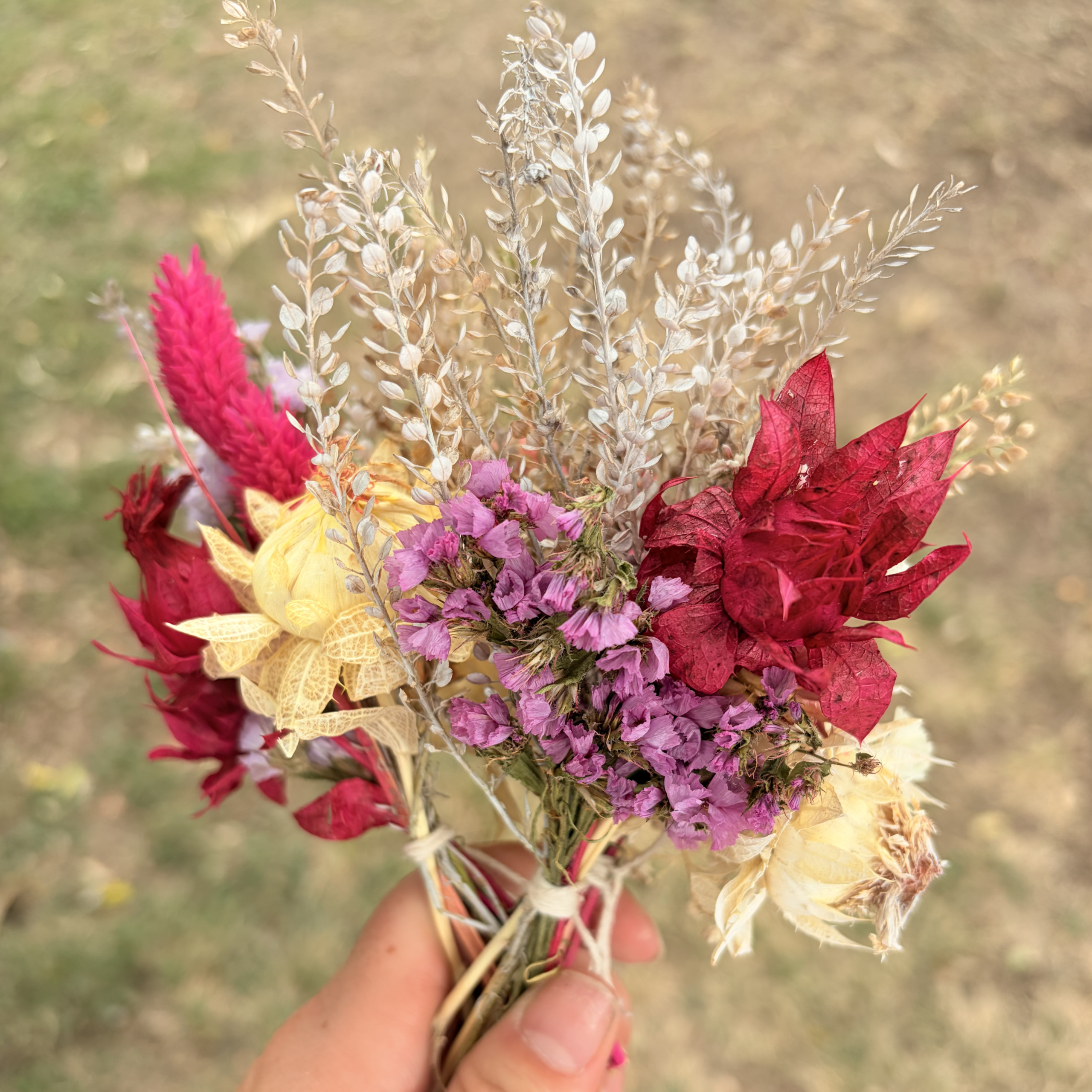 • Mini ramos de flores secas para decoración.