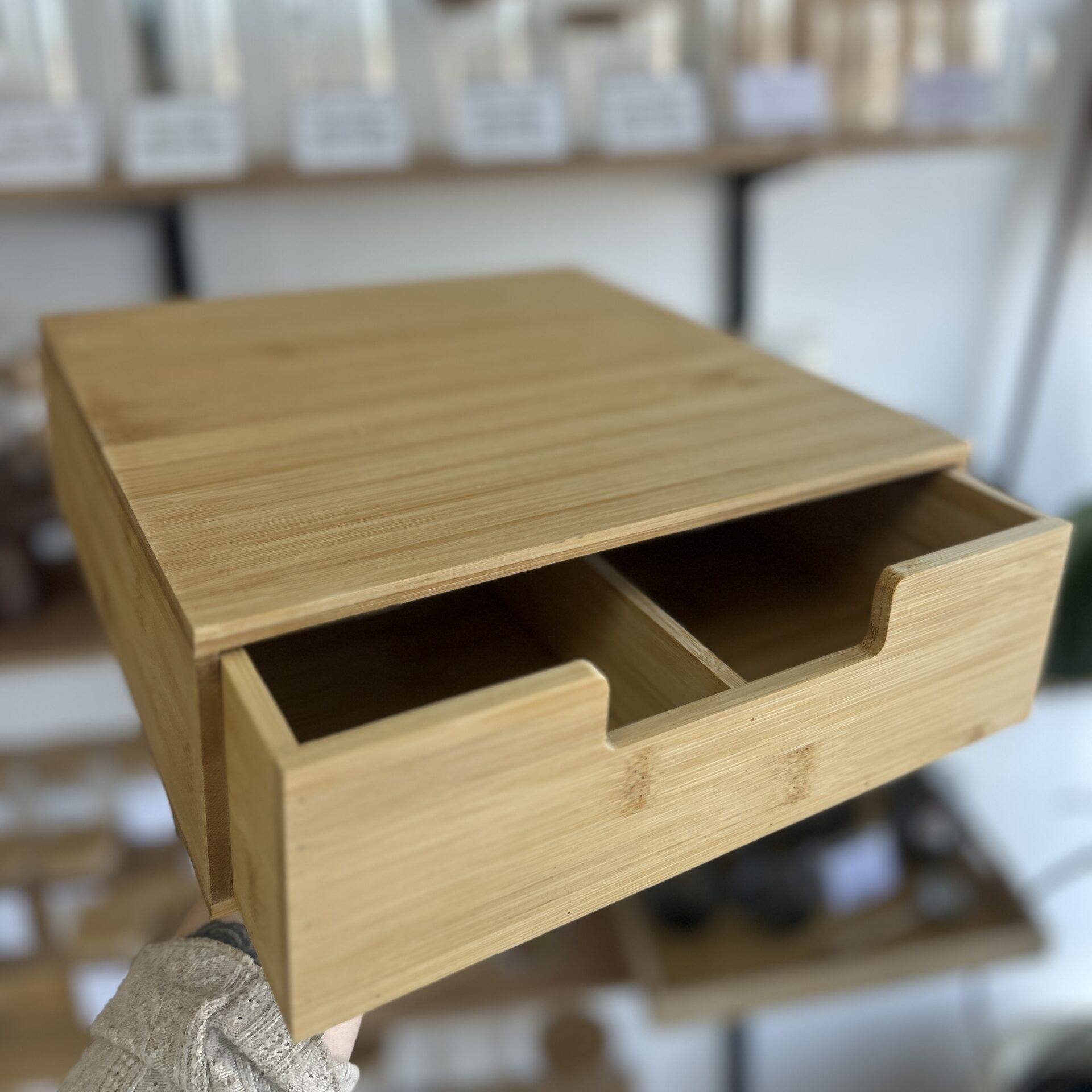 • Porta cápsulas o cajonera fabricado en bambú de alta calidad.