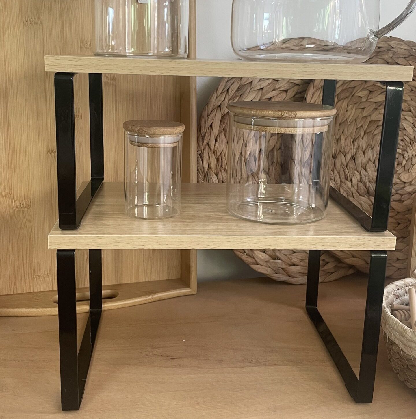 El set de 2 estantes de material metálico negro y madera es una opción práctica y elegante para organizar y exhibir objetos en cualquier espacio del hogar u oficina. Su combinación de metal resistente y madera aporta estabilidad y un estilo moderno, ideal para complementar la decoración mientras mantiene todo ordenado.